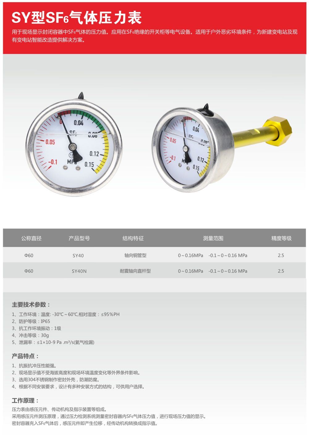 ZLDL-SY型SF6气体压力表